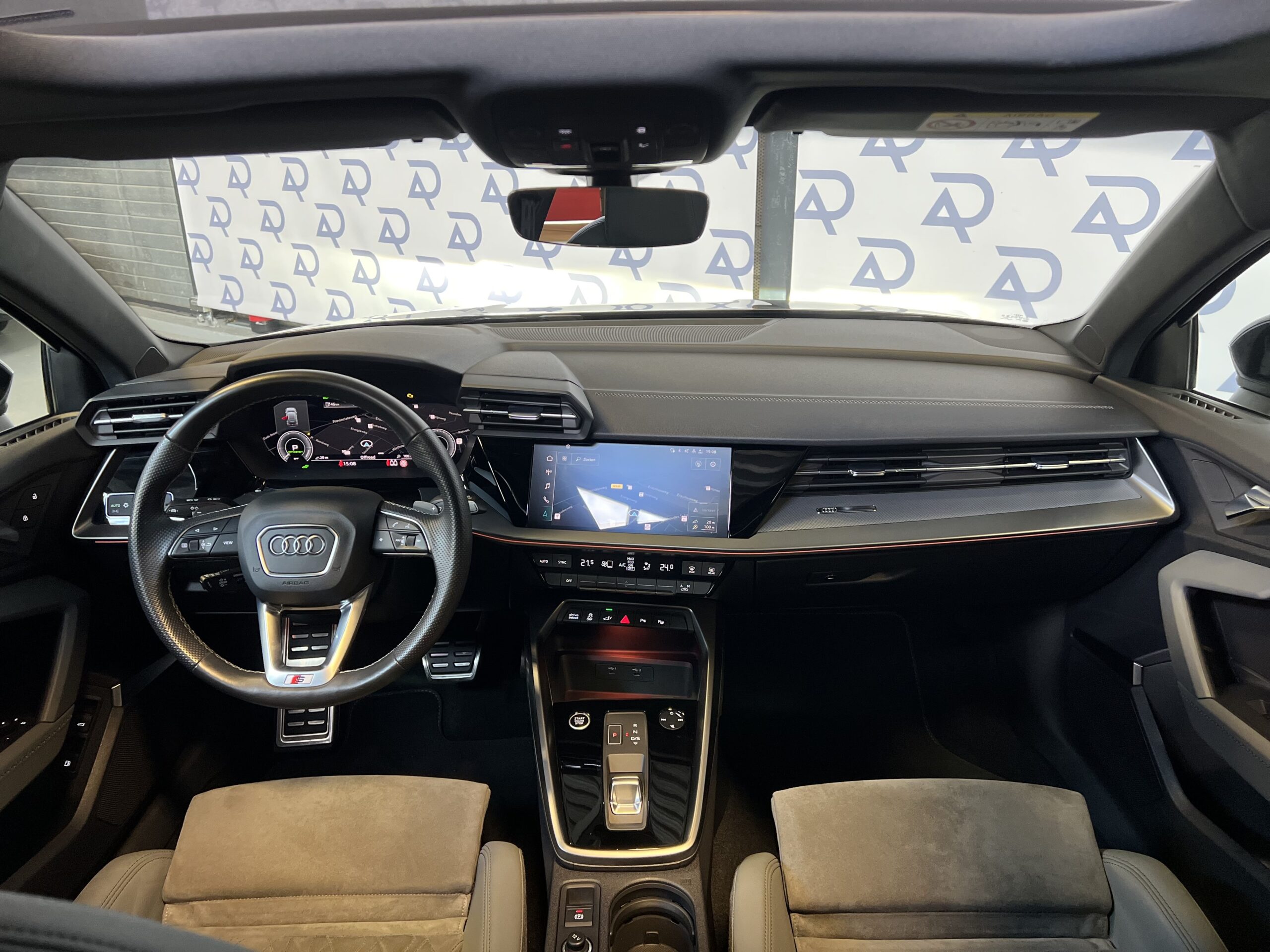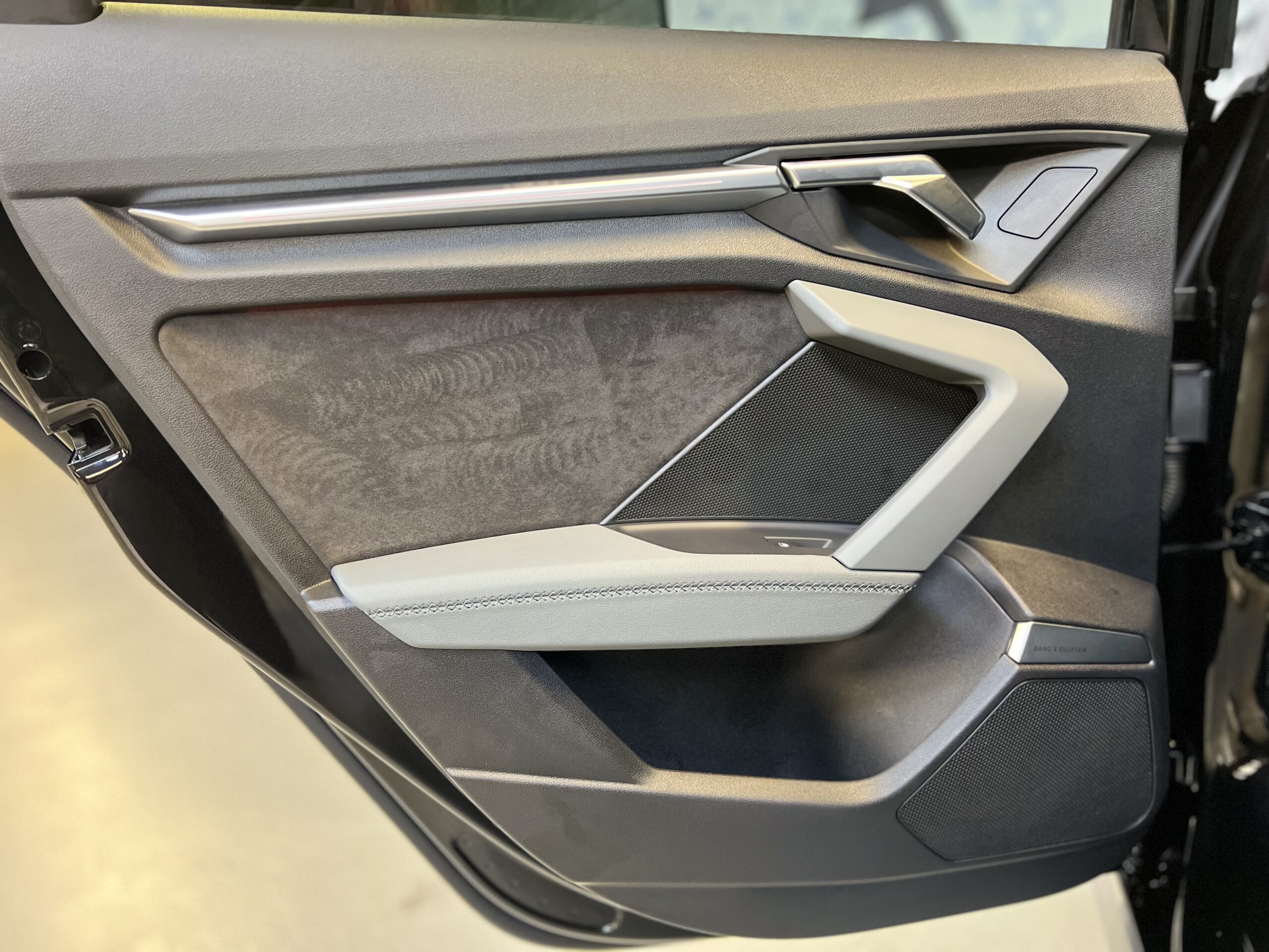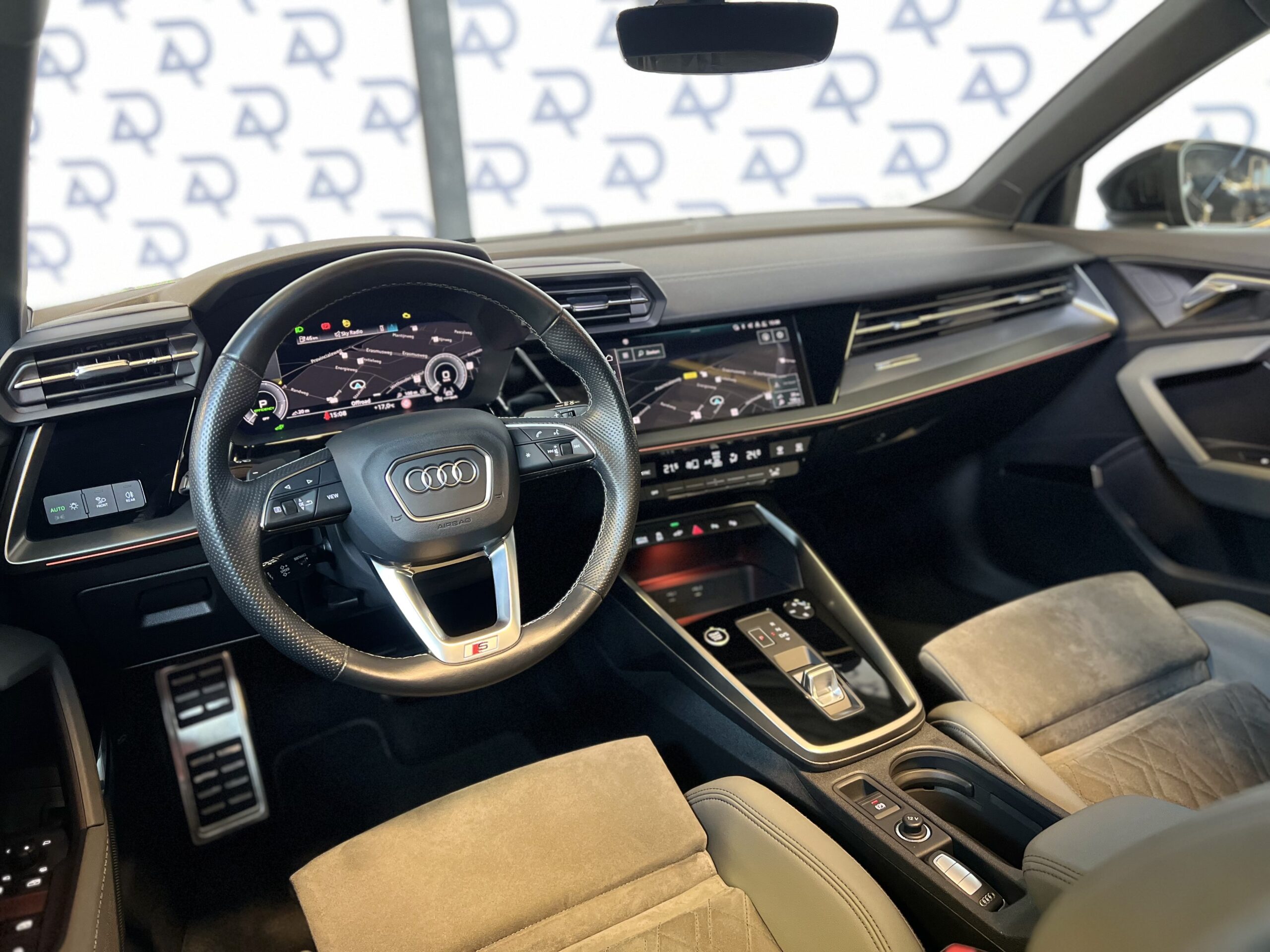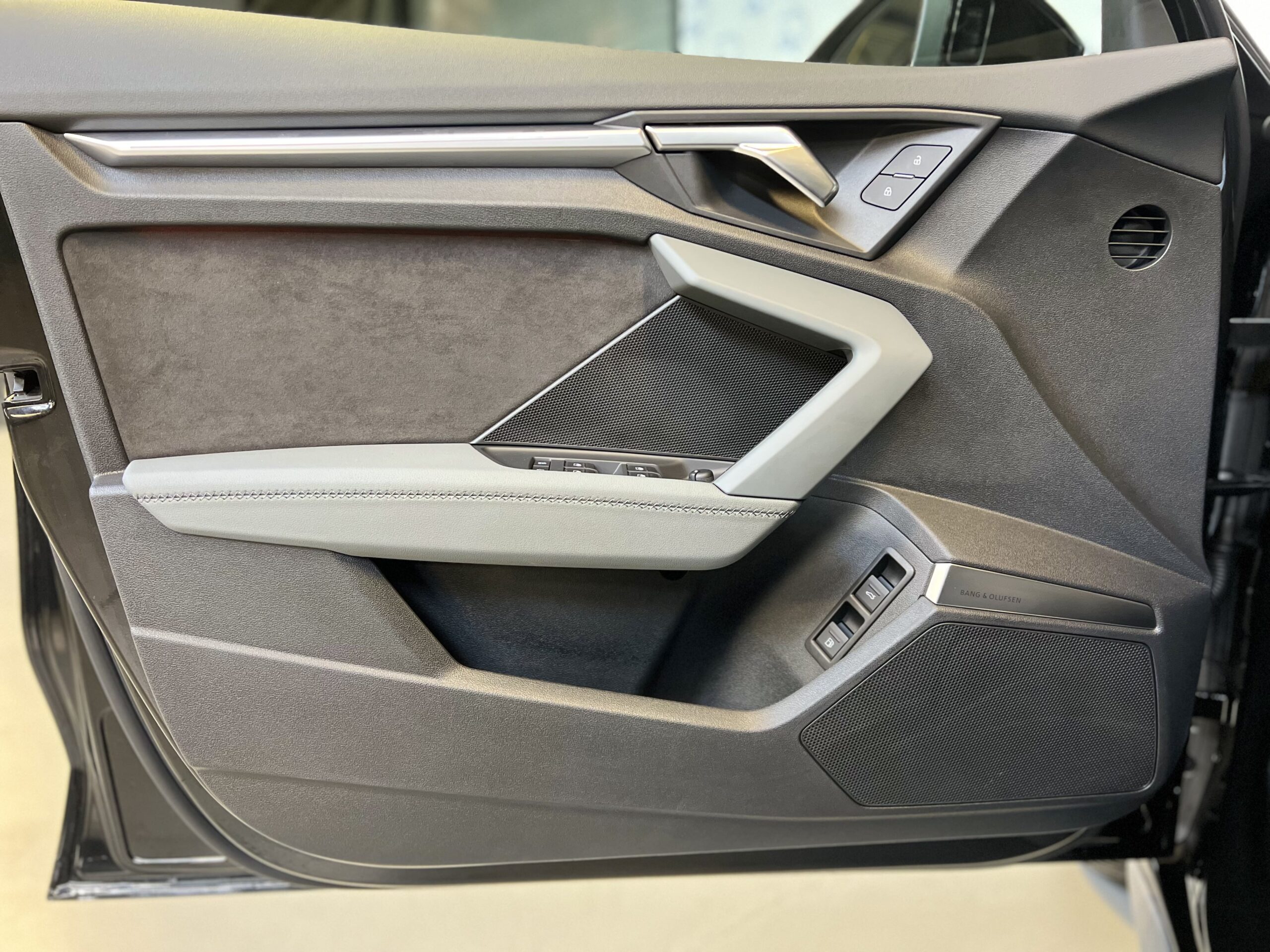 Het interieur van de Audi A3 is zeer compleet uitgerust. Dankzij de Ambienteverlichting Plus, het Bang & Olufsen-geluidssysteem en de aluminium accenten biedt de auto een moderne sfeer. Praktische functies zoals het bagagenet en de elektrische kindersloten zorgen voor extra gemak in het dagelijks gebruik. Daarnaast is het voertuig uitgerust met een navigatiesysteem met een groot kleurenscherm op de middenconsole, dat toegang biedt tot de nieuwste navigatie- en multimediavoorzieningen.