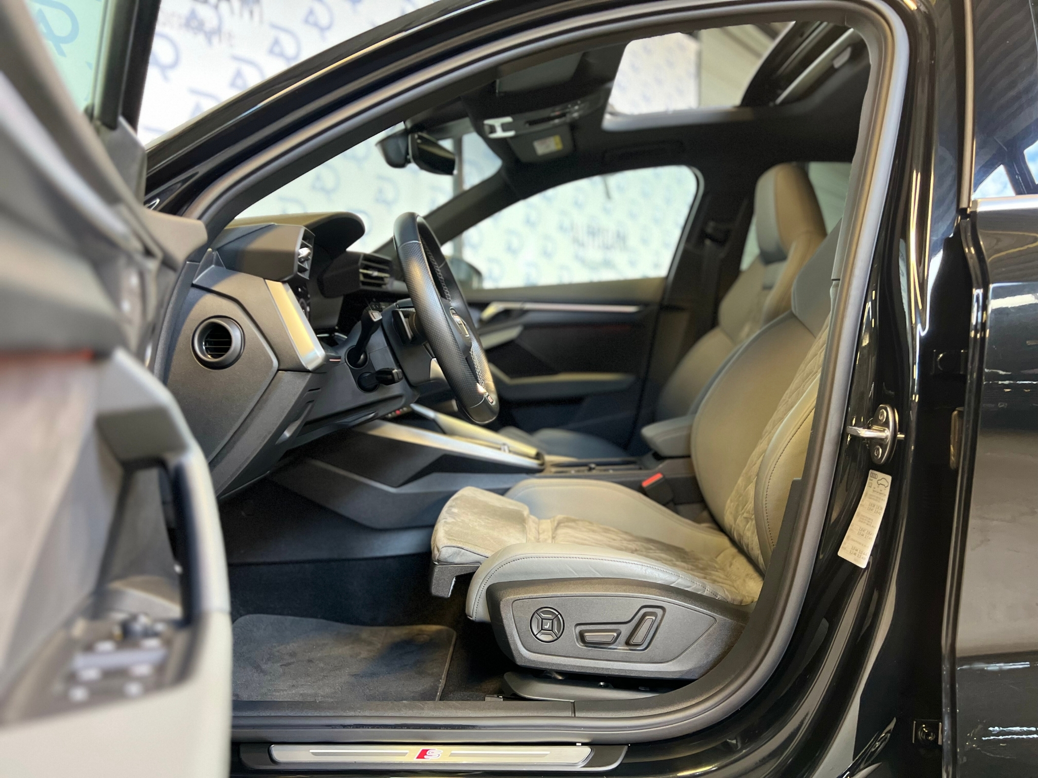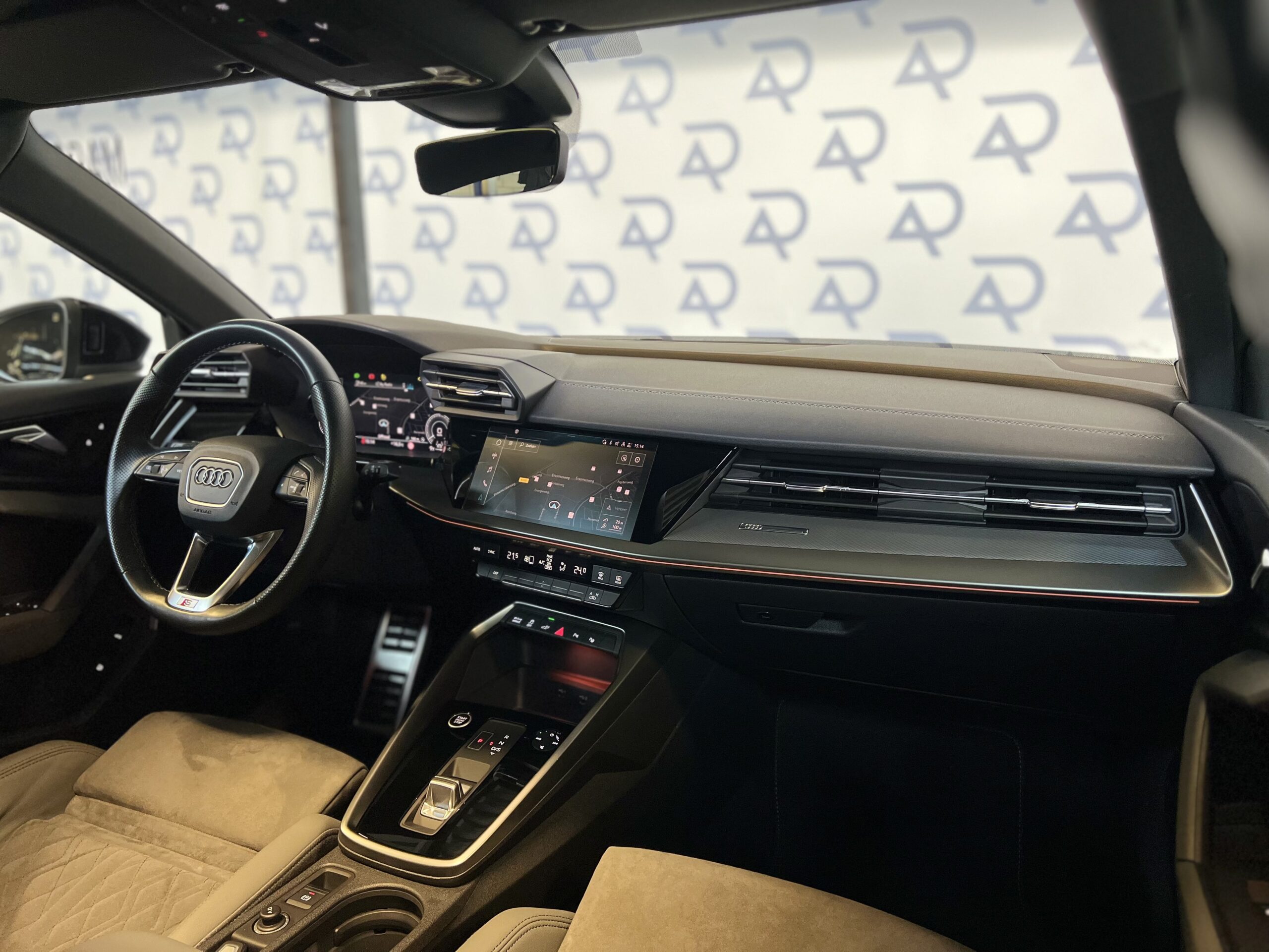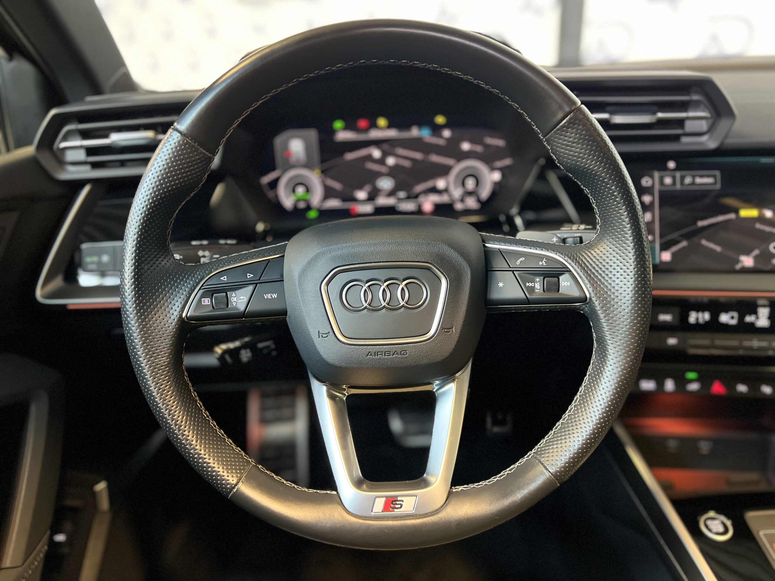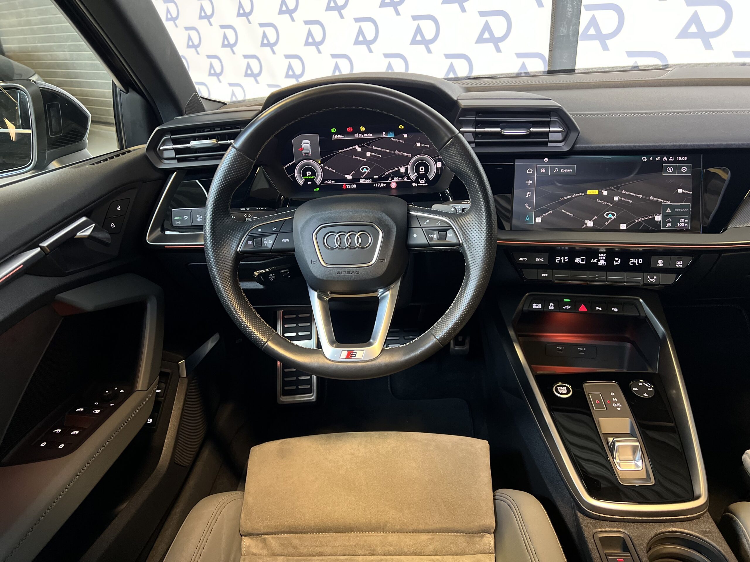 Het interieur van de Audi A3 is zeer compleet uitgerust. Dankzij de Ambienteverlichting Plus, het Bang & Olufsen-geluidssysteem en de aluminium accenten biedt de auto een moderne sfeer. Praktische functies zoals het bagagenet en de elektrische kindersloten zorgen voor extra gemak in het dagelijks gebruik. Daarnaast is het voertuig uitgerust met een navigatiesysteem met een groot kleurenscherm op de middenconsole, dat toegang biedt tot de nieuwste navigatie- en multimediavoorzieningen.