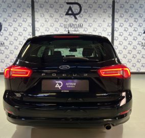 Ford Focus Wagon 1.0 EcoBoost Titanium modeli, LED dagrijverlichting en achter LED-remlichten heeft. Hij valt op door zijn Shadow Black (Mica) metallic kleur en 17-inch lichtmetalen velgen.